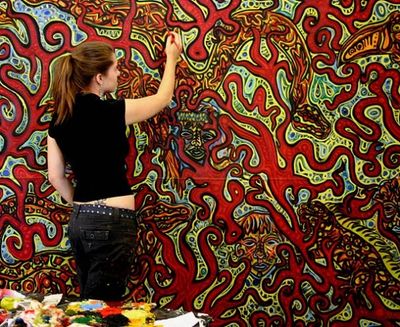 Energies are expressed through a vivacious calculation of lively color, line, and pattern. Variable repetitions throughout the composition dictate the internal and external reactions between animate and inanimate subject matter. Negative space is treated just as importantly as the positive spaces of the composition. There is no void in nature.